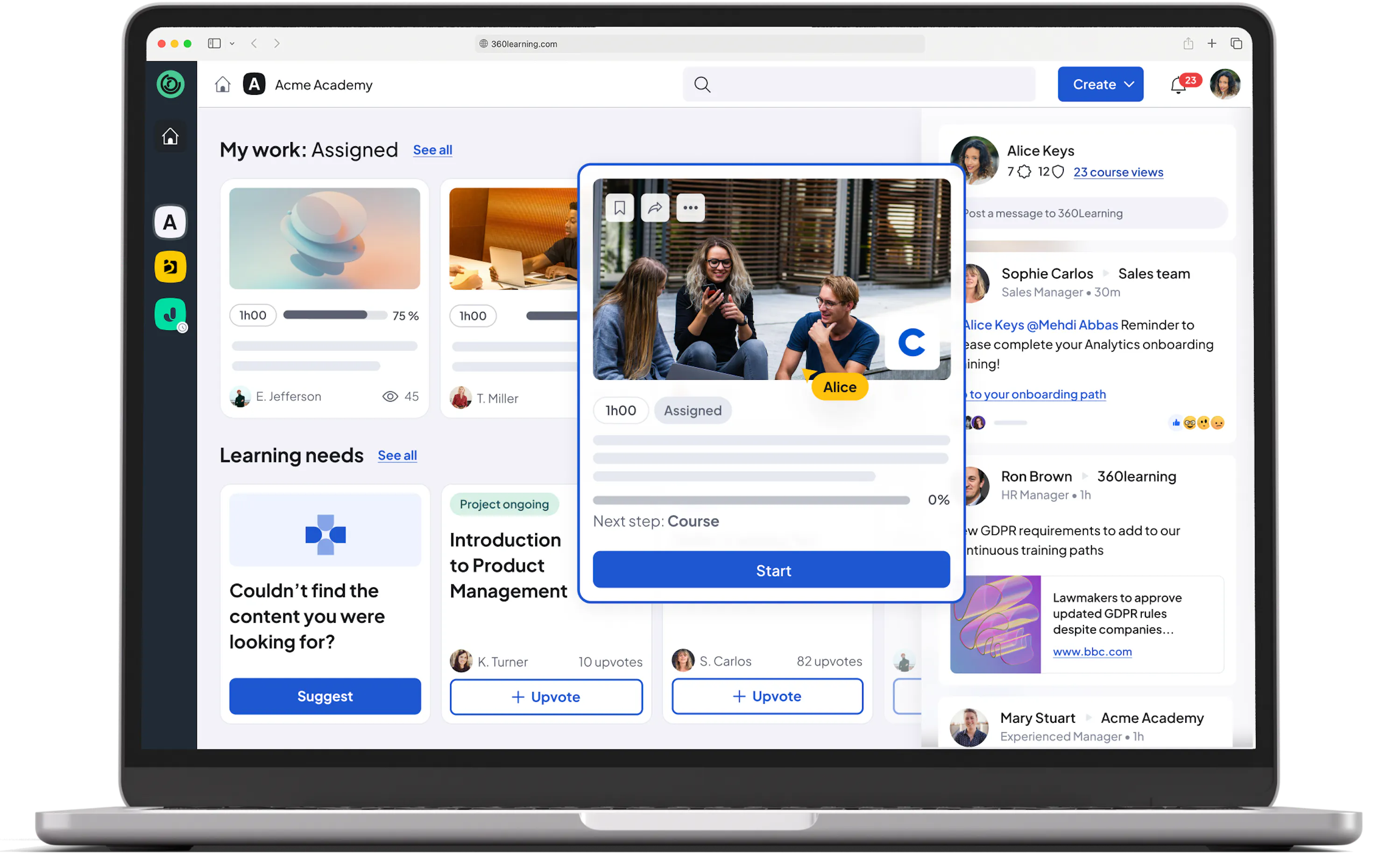 Struggling to show your learning strategy’s business impact? View digestible dashboards with actionable data to track learners, measure success, and make adjustments.